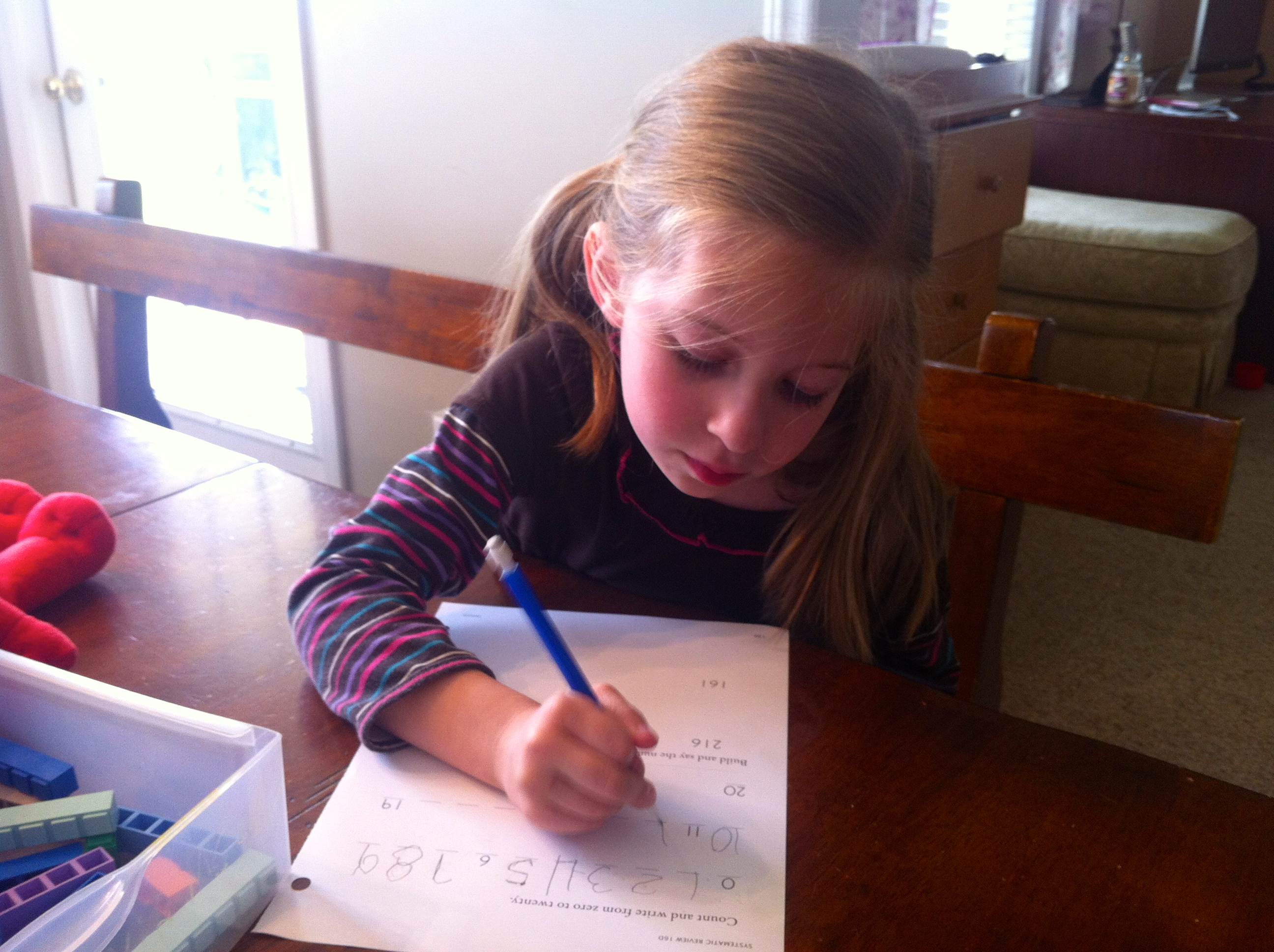 Gabby and I sat down at the kitchen table with reading books, math text, and a ginormous mug of coffee within arm’s reach.